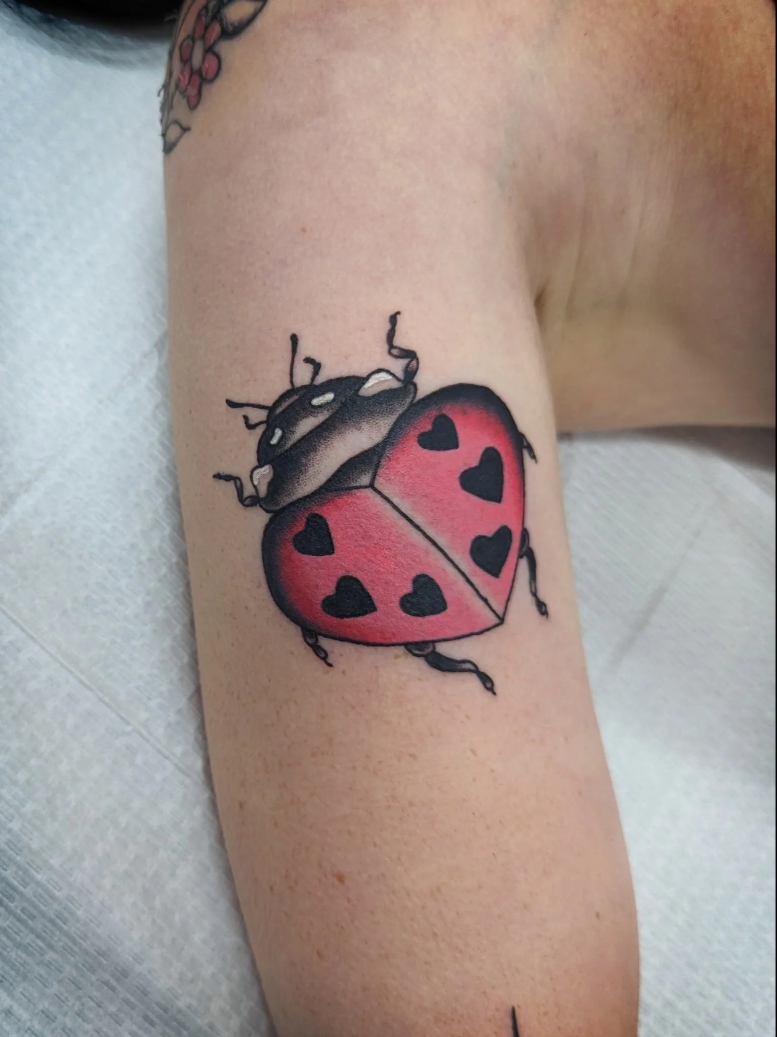 Howdy I'm Sunshine! I've been tattooing for two years and I love doing cutesy American traditional and anything cartoon-y. Bugs and weird little creatures are very near and dear to my heart, so of course I love tattooing them! 🪲 I'm also a bit of an amateur entomologist and taxidermist. I live to make art and to be kind, and my goal is to make that show through my tattooing. 🖤 Send me an email or dm and let's make the cute tattoo of your dreams!